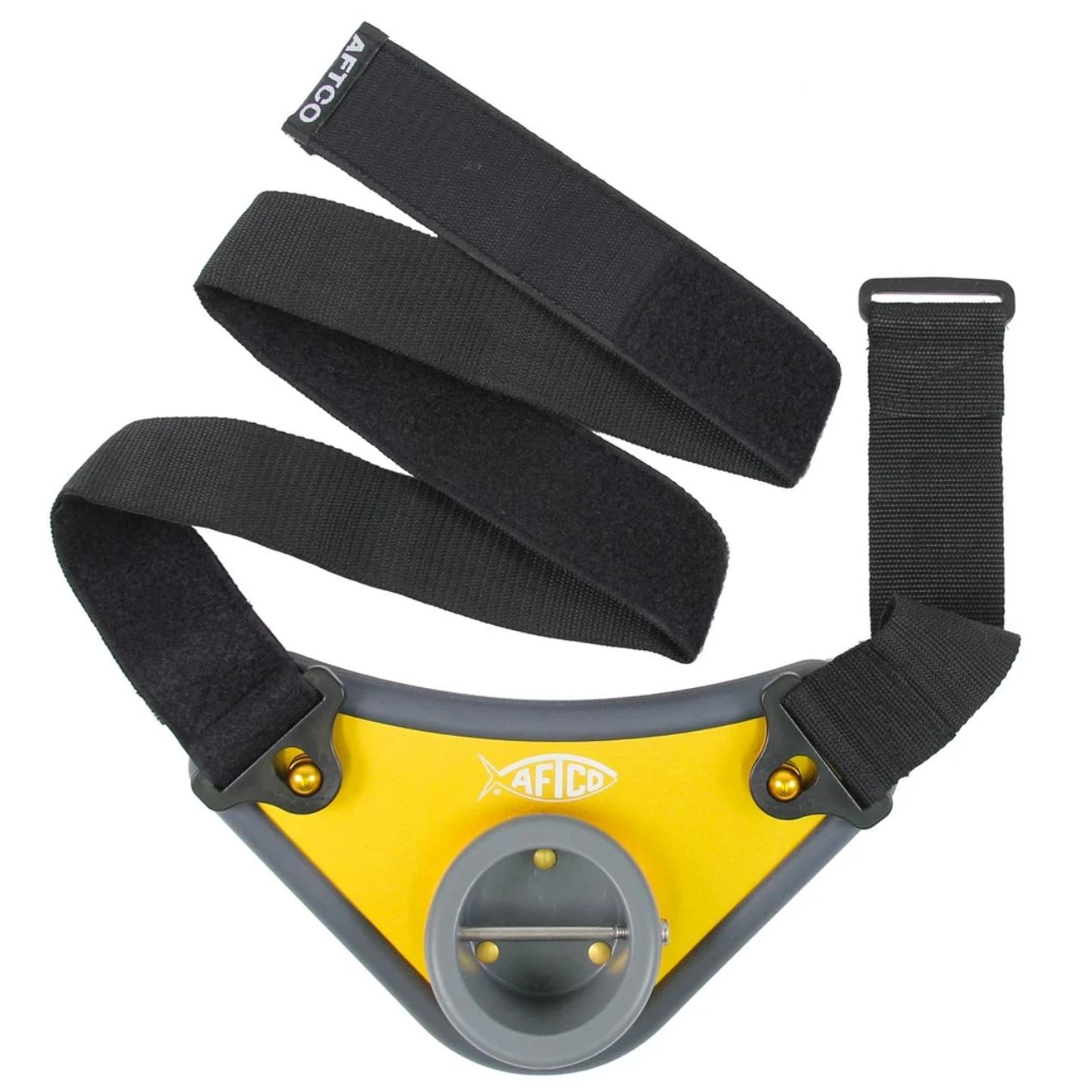 The AFTCO Alijo Fighting Day Belt is designed for use with 20-lb. to 50-lb.lines and is the perfect “day belt” for stand-up fishing against sailfish, dolphin, kingfish, small tuna, yellowtail and other smaller to medium-sized gamefish. Ā Stamped from pure marine grade gold anodized aluminum with a super-comfortable over-molded, closed cell polyurethane pad, the Alijo fishing belt accommodates the same “Quick Clip” nylon straps as the larger AFTCO fighting belts. Ā The stainless steel gimbal cross pin is removable, but unique is the thermal-formed nylon liner inside the aluminum gimbal pocket that helps resist scarring. Ā The Alijos fishing rod holder belt is lightweight and easy to wear, yet offers the same heavy-duty features of the larger AFTCO fishing rod holderĀ belts.
