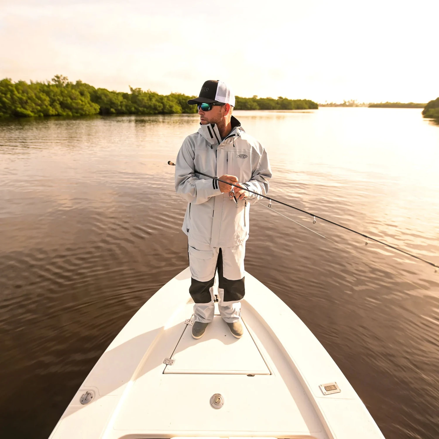 The Aftco Barricade Jacket is built with high-end features at a competitive price, offering durable 3-layer construction, 20K waterproofing, 15K breathability, the signature SpeedVent™ hood and more! An elasticated hem cinch allows you to quickly dial in the fit while the Double Dry cuffs prevent water from seeping up the arms.