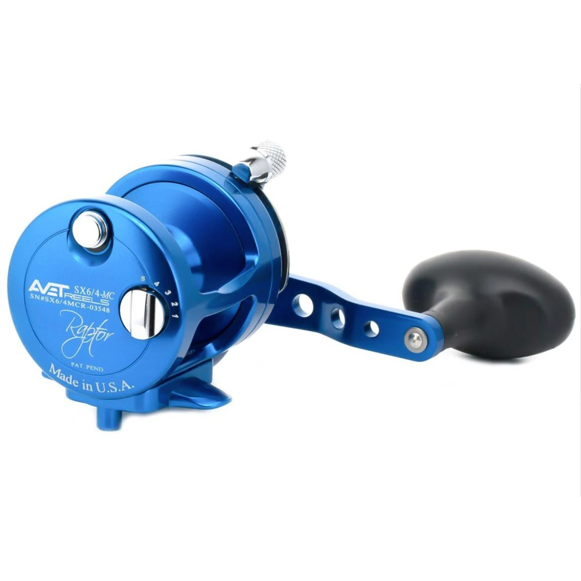 Avet SX Raptor Series 2-Speed Lever Drag Reels feature Avet’s patented, powerful Dual carbon fiber drag system producing Twice the drag output of Avet’s standard series reels.  Avet’s conventional lever drag reels are precision machined 6061 T-6 marine grade aluminum and stainless steel components. Anodized for superior corrosion resistance and beautiful finish. The Avet SX Raptor Series 2-Speed Lever Drag Reels are a true one piece frame for the ultimate in strength vs. weight. With a powerful lever drag system with an adjustable strike pre-set. The SX Raptor series have up to 17 lbs. at strike, 26 lbs. full.