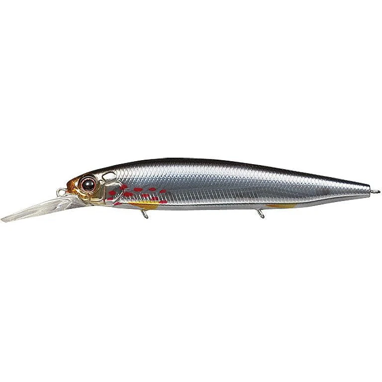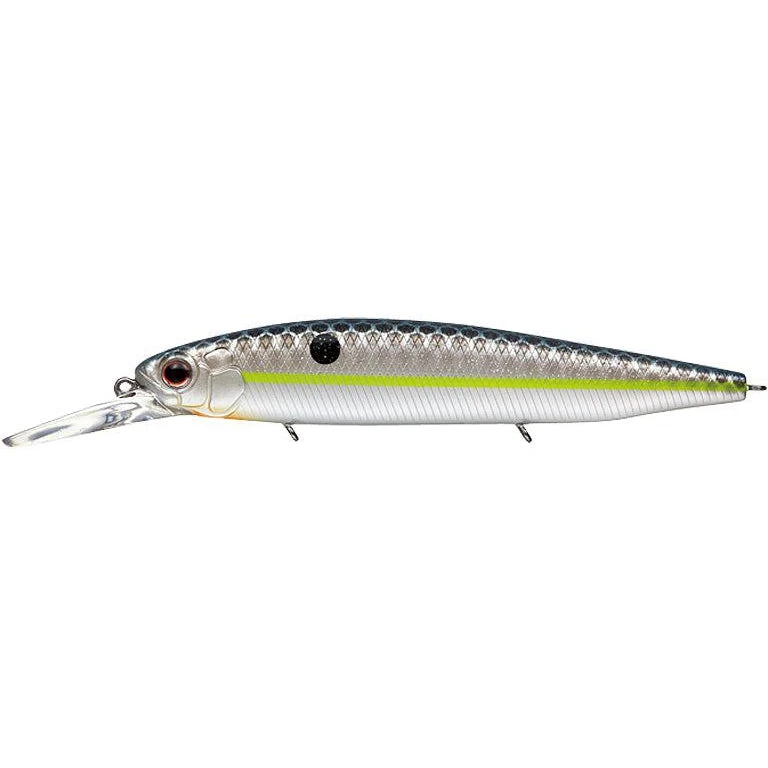 This jerkbait is the answer to Morizo’s uncompromising search for tools that lead to a catch. As a tournament fisherman, Shimizu says he only uses tools he is confident will bring about absolute results. Regardless of season or field, this jerkbait has all the features — body shape, lip structure, action, distance, ability to go deep and much more — of an ultimate search bait that works with efficiency under any condition. Its significant vibrations move the water dynamically to attract fish near and far, then with an irregular dart, induces a strike in a lure-in-and-trigger-a-bite action that Shimizu favors. The jerkbait boasts complete mastery when it comes to searching a wide area.