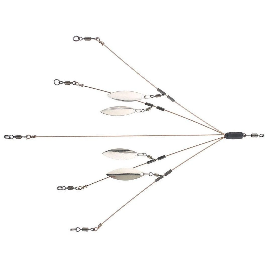 The G Funk Bladed Bama G-Rig is best complimented in low visibility, and stained water conditions. The Bama Rig comes suited with a 5 wire, 4 bladed, and a full 5 hook capability. (Some states have certain regulations on the amount of hooks that are permitted) The G Funk Bladed options generates added vibration and a flash that drives fish nuts, and turns a follower into a fully committed biter!