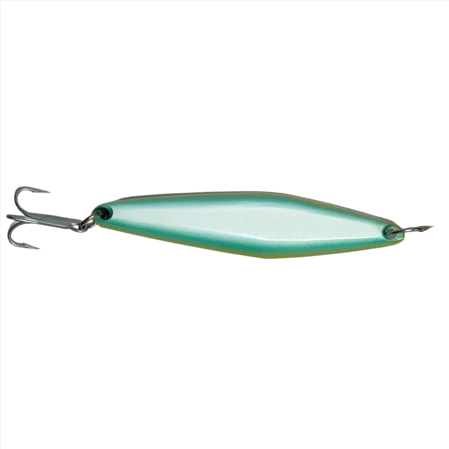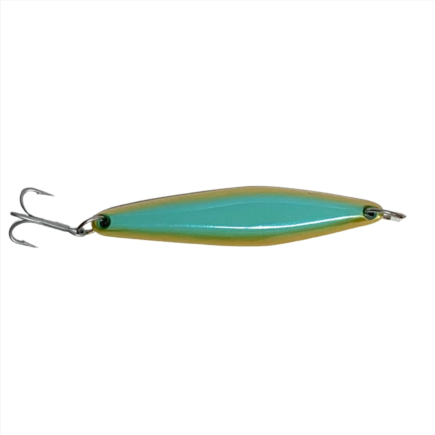 The JRI Custom Lures JRI-3 Surface Iron Jigs are the widest kicking jig in the family. An excellent swim action with a very pronounced kick out to one side. It’s during this kick out that triggers strikes from followers and non aggressive fish. Also a great casting surface iron weighing in at 3.3 ounces and 6 inches long. JRI-3 seem to be most productive on a slow retrieve however conditions will determine that, gets bit on the medium retrieve as well. JRI Custom Lures JRI-3 Surface Iron Jig is the one that the Locals always have at the ready for when they come up out of nowhere. Anything that swims or has fins loves it.