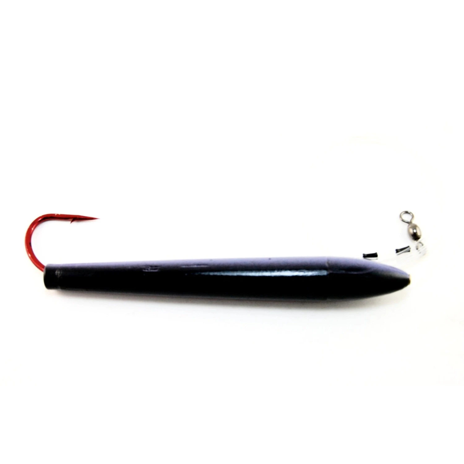 6″ long body including lead head and cedar wood.