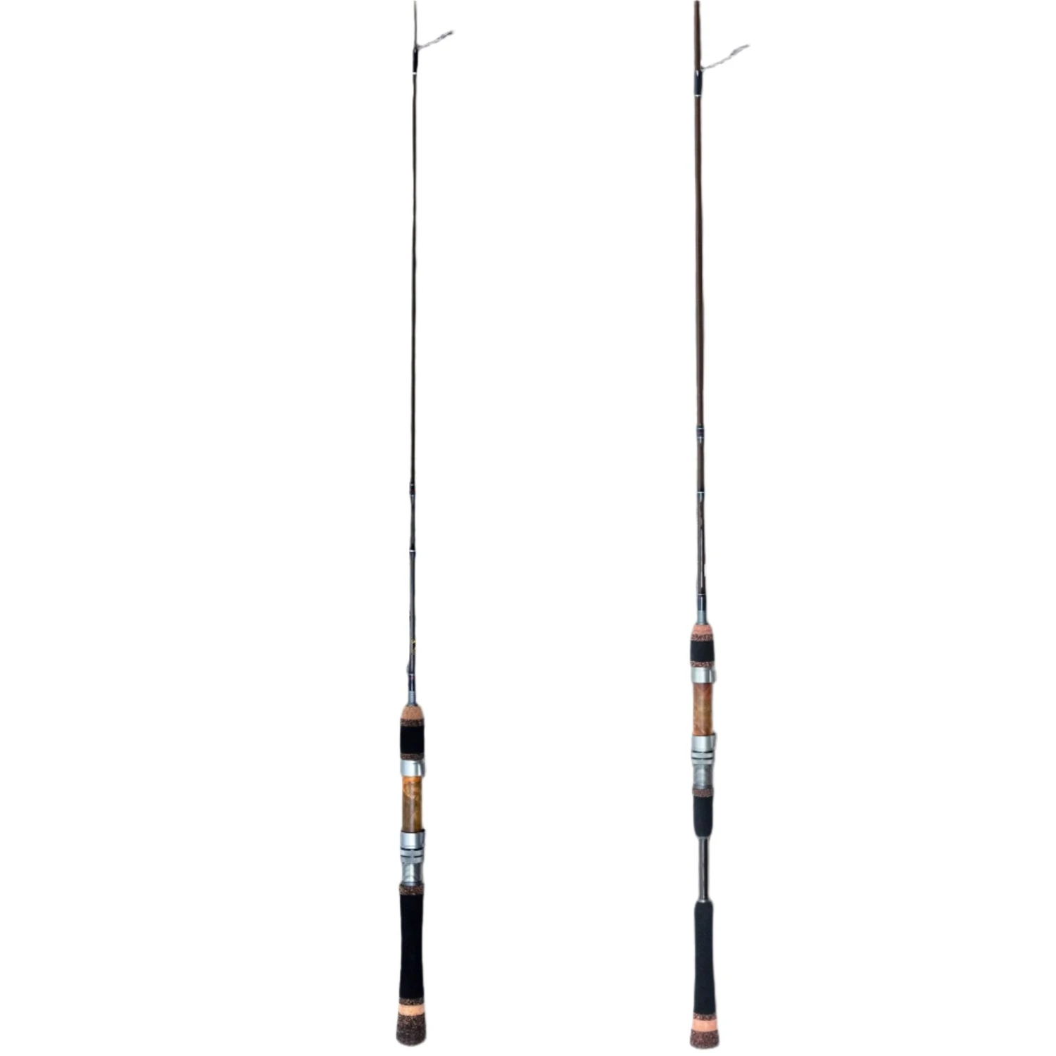 The Phenix Mirage Ultralight Spinning Rods are composed of an advanced Carbon Fiber Phenix calls Net V. Traditional glass blanks tend to be heavy, thicker in diameter and lacks backbone. The Net V gives the Mirage Ultralight Spinning Rods a very soft and forgiving action while maintaining a solid backbone. The thin diameter of the Net V blank permits the Mirage to be extremely light and balanced. The Mirage series features a 2 piece option that breaks just above the handle. This allows for compact storage and travel while ensuring performance of a one piece rod.