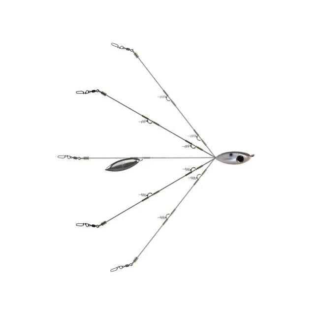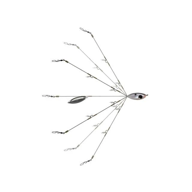 The Picasso School-E-Rig Extreme takes the Bait Ball to a whole new level. Starting with the 3 wire 6 bait version all the way up to the 7 wire 16 bait version the Bait Ball Extreme is the new craze with rigs. Developed with the collaboration of 2013 FLW Lake Chickamagua winner Casey Martin, the Picasso Bait Ball Extreme has 5 versions allowing the angler to fish from 6 to 16 baits on one umbrella rig while abiding by the state laws. This NEW rig is equipped with a new industrial strength spring wire, 75 pound test strength snap swivels and a 90 pound test imbedded nose swivel.