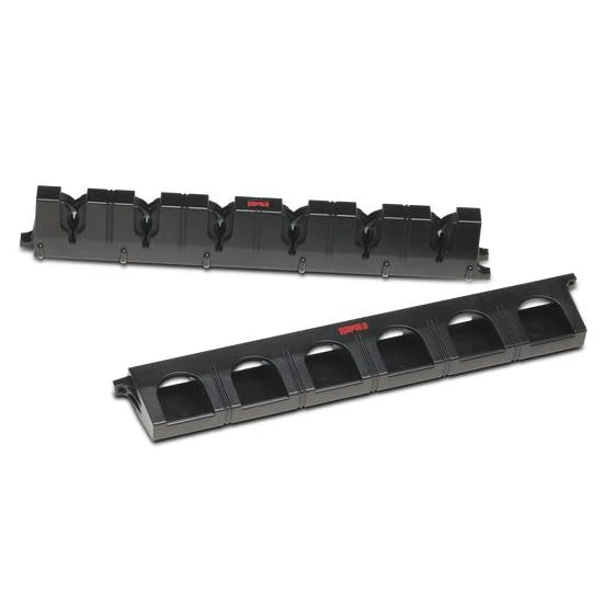 This Rapala Lock ‘n Hold Rod Rack has long lasting plastic jaws hold a variety of rod sizes without deforming or damaging the blank. Designed to keep up to six rods and combos organized and safe on any surface, in any orientation – horizontal, vertical – even on the ceiling. Simple base grip holder takes the pressure off rod eyes eliminating damage. Durable construction for a lifetime or use. All required mounting hardware included.