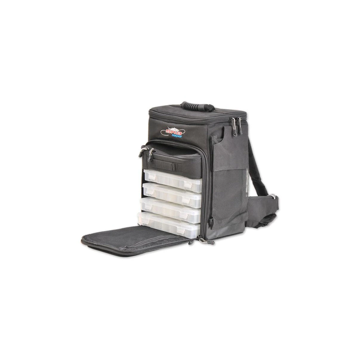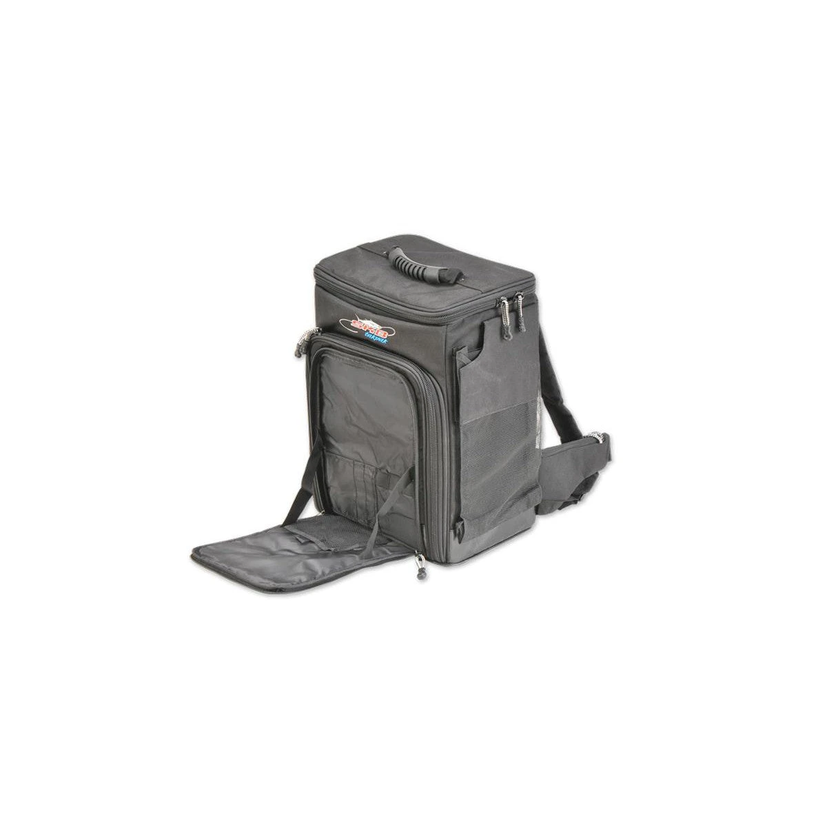 The SKB Tak-Pak Backpack Tackle System is made of 600 Denier cross dyed fabric with a water resistant coating. A durable zipper with weather flap helps keep your valuables dry, including a separate cell phone pouch in the top compartment. Five exterior pockets assist in stowing small boxes, cloths, sunblock, or whatever you need to take for your fishing trip.